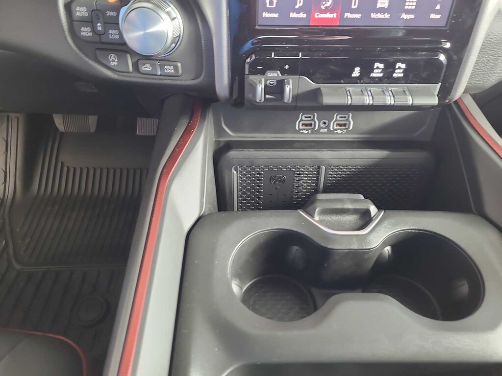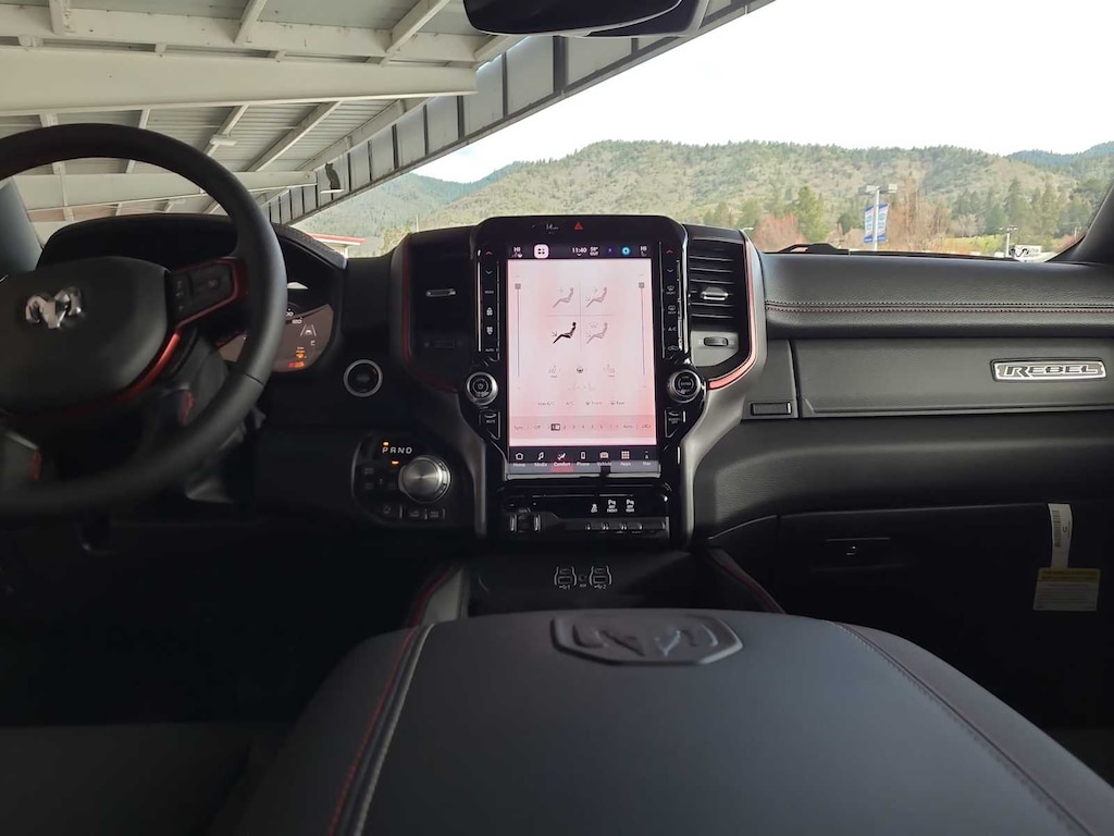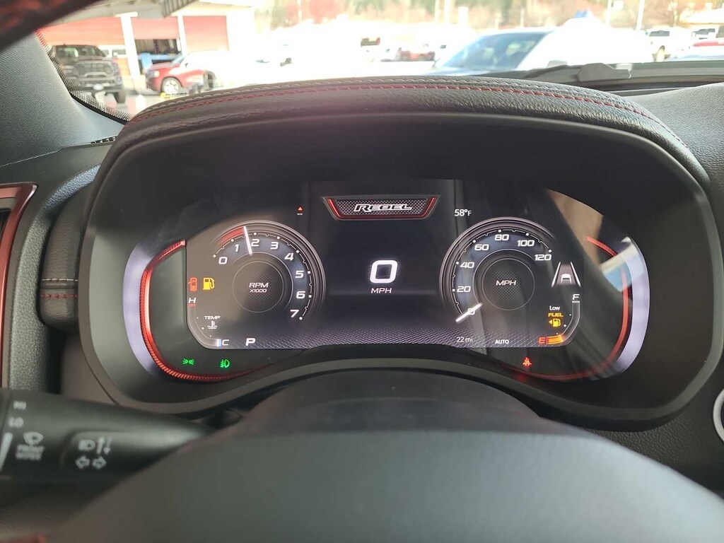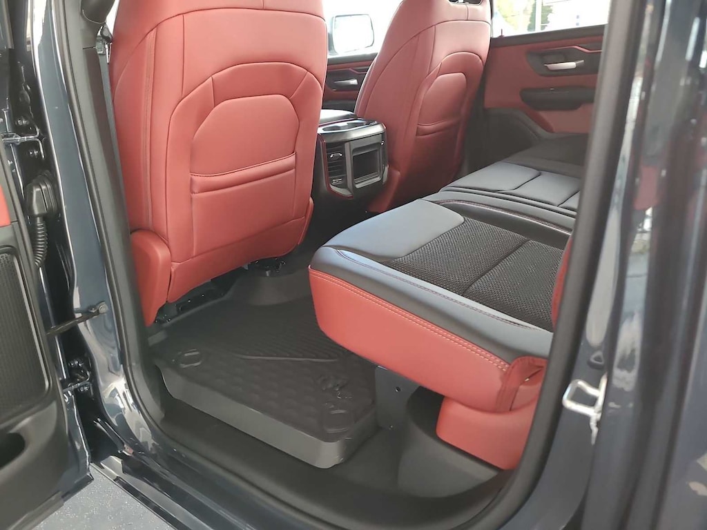 BED UTILITY GROUP MOPAR Spray In Bedliner, MOPAR 4 Adjustable Cargo Tie-Down Hooks, Exterior 115V AC Outlet, REBEL LEVEL 1 EQUIPMENT GROUP Rear Window Defroster, Wireless Charging Pad, Power Adjustable Pedals, Exterior Mirrors w/Supplemental Signals, Exterior Mirrors Courtesy Lamps, Auto Power-Folding Mirrors, Remote Tailgate Release, Auto Dim Exterior Driver Mirror, Black Premium Power Mirrors, TRANSMISSION: 8-SPEED AUTOMATIC (8HP75) (STD). Ram Rebel with Forged Blue Metallic exterior and Red/Black interior features a Straight 6 Cylinder Engine with 420 HP at 5200 RPM*.