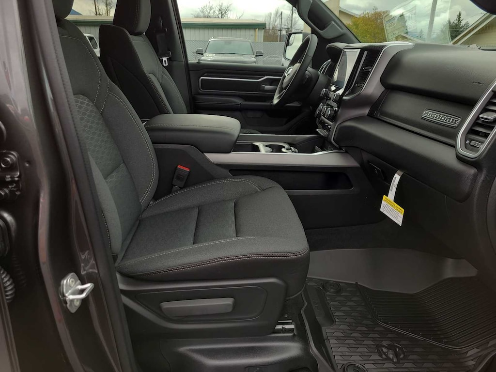 ENGINE: 5.7L V8 HEMI MDS VVT ETORQUE Active Noise Control System, Heavy Duty Engine Cooling, Passive Tuned Mass Damper, GVWR: 7,100 lbs, Dual Rear Exhaust w/Bright Tips, G/T Exhaust, 18 Aluminum Spare Wheel, BIG HORN LEVEL 1 EQUIPMENT GROUP SiriusXM Radio Service, Rear Window Defroster, Rear View Auto Dim Mirror, Power Adjustable Pedals, Leather Wrapped Steering Wheel, Rear Power Sliding Window, Rear Dome w/On/Off Switch Lamp, Glove Box Lamp, Auto Power-Folding Mirrors, Auto Dim Exterior Driver Mirror, Heated Front Seats, Heated Steering Wheel, Black Premium Power Mirrors, SiriusXM Satellite Radio, 400W Inverter, Exterior Mirrors w/Supplemental Signals, Steering Wheel Mounted Audio Controls, Exterior Mirrors Courtesy Lamps, Body Color Fender Flares, 115V Auxiliary Power Outlet, Universal Garage Door Opener, 2nd Row In Floor Storage Bins, Sun Visors w/Illuminated Vanity Mirrors, BED UTILITY GROUP MOPAR Spray In Bedliner, MOPAR 4 Adjustable Cargo Tie-Down Hooks, Pick-Up Box Lighting, Exterior 115V AC Outlet, MOPAR FRONT & REAR RUBBER FLOOR MATS, TRANSMISSION: 8-SPEED AUTOMATIC (8HP75). Ram Big Horn with Granite Crystal Metallic Clearcoat exterior and Black interior features a 8 Cylinder Engine with 395 HP at 5600 RPM*.