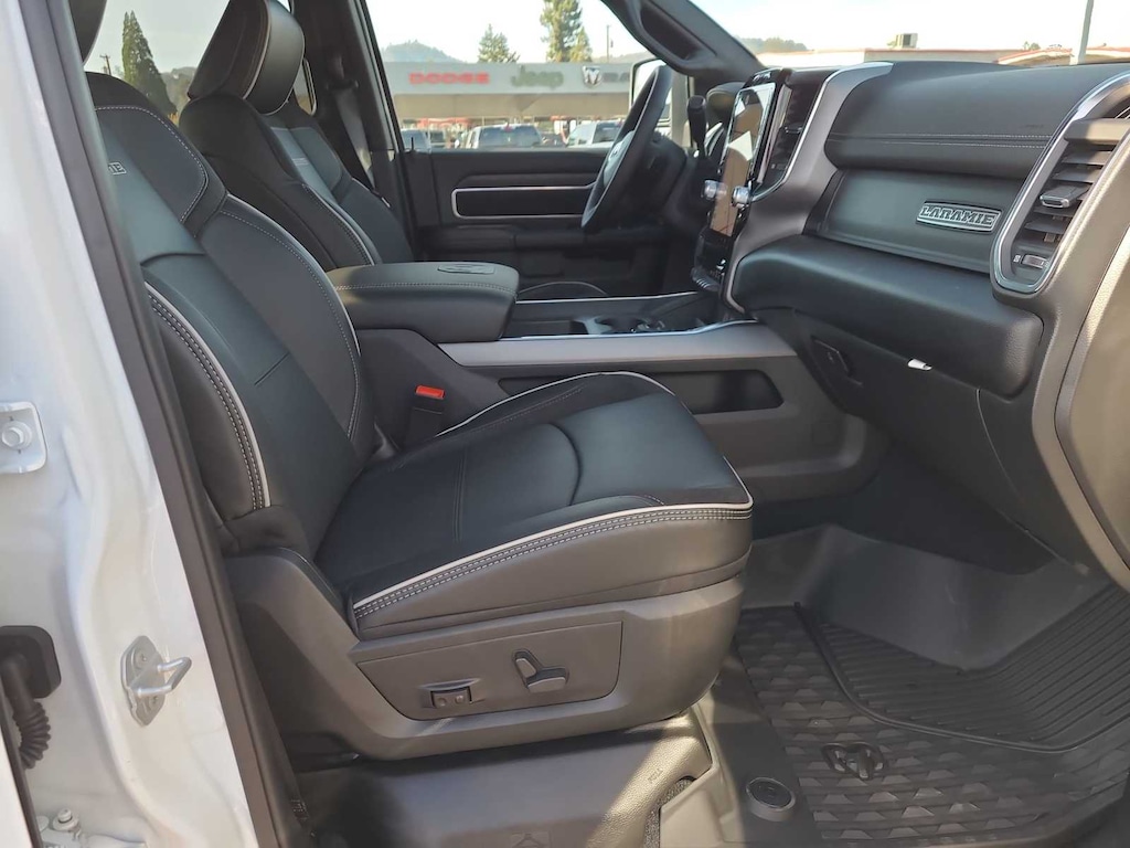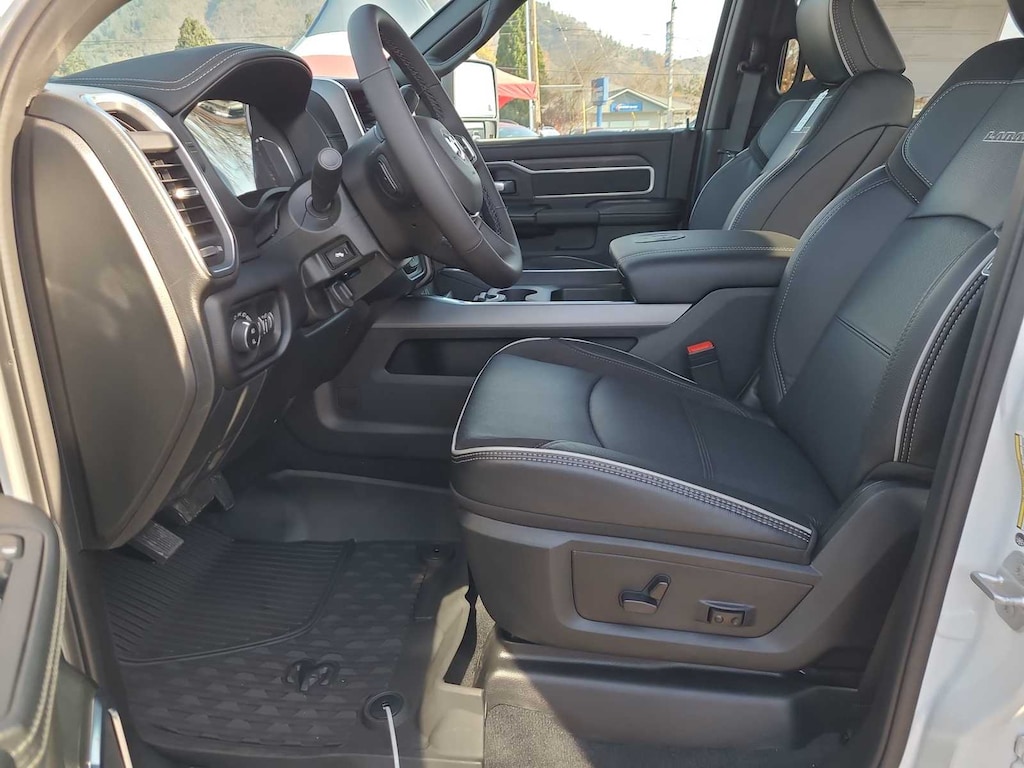 LARAMIE LEVEL 1 PLUS EQUIPMENT GROUP CTR Stop Lamp w/Cargo View Camera, Rain Sensitive Windshield Wipers, Power Adjustable Pedals w/Memory, LED Bed Lighting, Traffic Sign Recognition, Adaptive Steering System, Auto Dimming Exterior Mirrors, Drowsy Driver Detection, MOPAR Deployable Bed Step, Foam Bottle Insert (Door Trim Panel), Active Lane Management System, Power Heat Fold Memory Telescopic Mirrors, MOPAR Spray In Bedliner, Remote Tailgate Release, Auto High Beam Headlamp Control, Exterior Mirrors w/Memory, 2nd Row In Floor Storage Bins, Auto Dimming Exterior Passenger Mirror, Auto Adjust In Reverse Exterior Mirrors, MOPAR FRONT & REAR RUBBER FLOOR MATS, TRANSMISSION: 8-SPEED TORQUEFLITE HD AUTOMATIC, BLACK, LEATHER TRIMMED BUCKET SEATS Bucket Seats, Dual Wireless Charging Pad, Full Length Upgraded Floor Console. Ram Laramie with Bright White Clearcoat exterior and Black interior features a Straight 6 Cylinder Engine with 405 HP at 5600 RPM*.