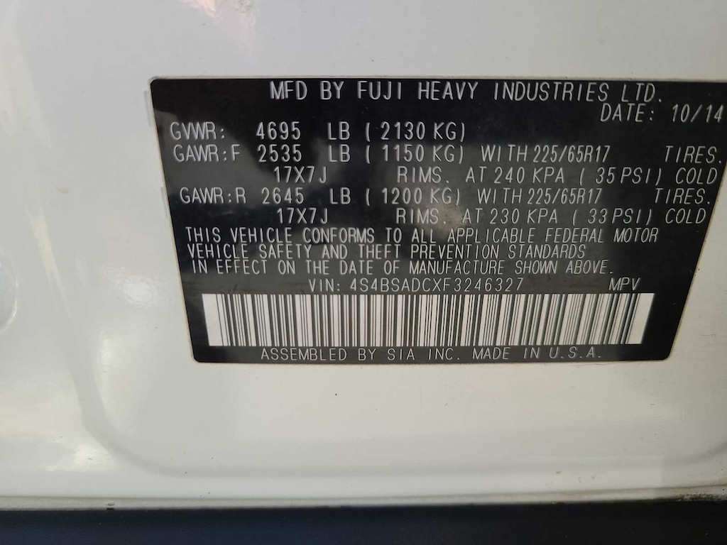 AWD CVT Lineartronic 2.5L 4-Cylinder DOHC 16V 6 Speakers, Air Conditioning, CD player, Moonroof Package & Power Rear Gate, Power driver seat, Power Moonroof Package, Power Rr Gate w/ Automatic Close & Height Memory, Power steering, Power windows.